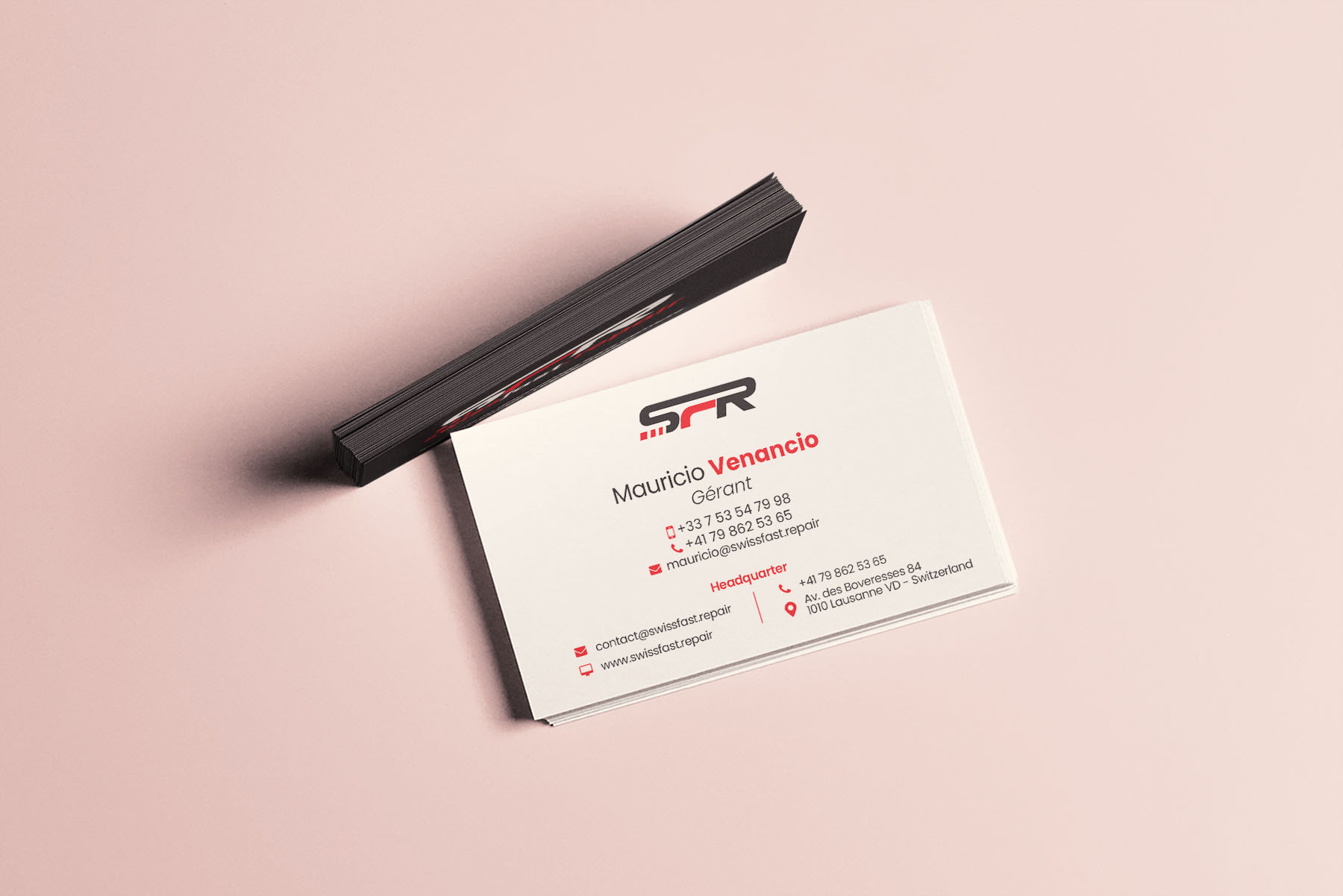 En tant que designer graphique freelance, j’ai conçu la carte de visite de Swiss Fast Repair, une entreprise spécialisée dans le débosselage sans peinture. L’objectif était de créer un support professionnel et moderne, reflétant l’expertise technique et la rapidité de l’entreprise.